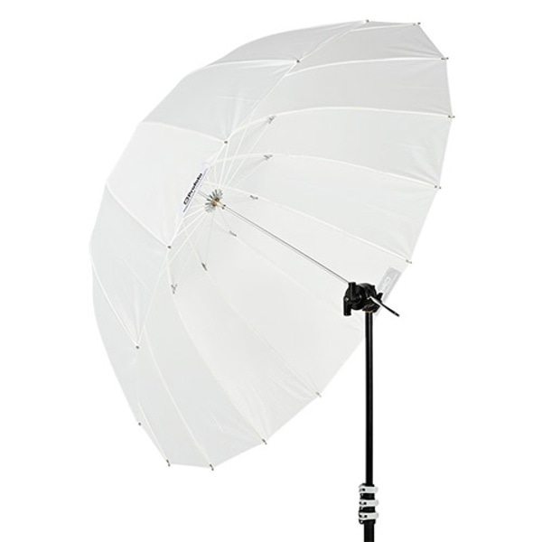 Profotoのアンブレラ ディープは、一般的なアンブレラと比較して奥行きが深いパラボリックな形状になっています。奥深い形状によって、光の広がりの正確なコントロールが可能です。また、アンブレラのホルダーでシャフトを上下にスライドするだけで光をコントロールできます。
