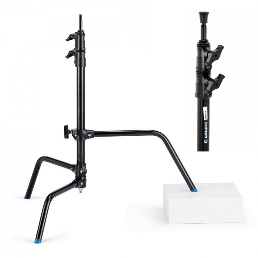 3段2ライザー構成の黒クロームメッキ仕上げスチール製タートルベーススタンドです。脚は平らに折りたたむことができ、収納に便利です。最大8kgの機材を保持することができ、1.75mの高さまで伸ばすことが可能です。不整地でも使いやすいよう、スライド脚を1本備えています。