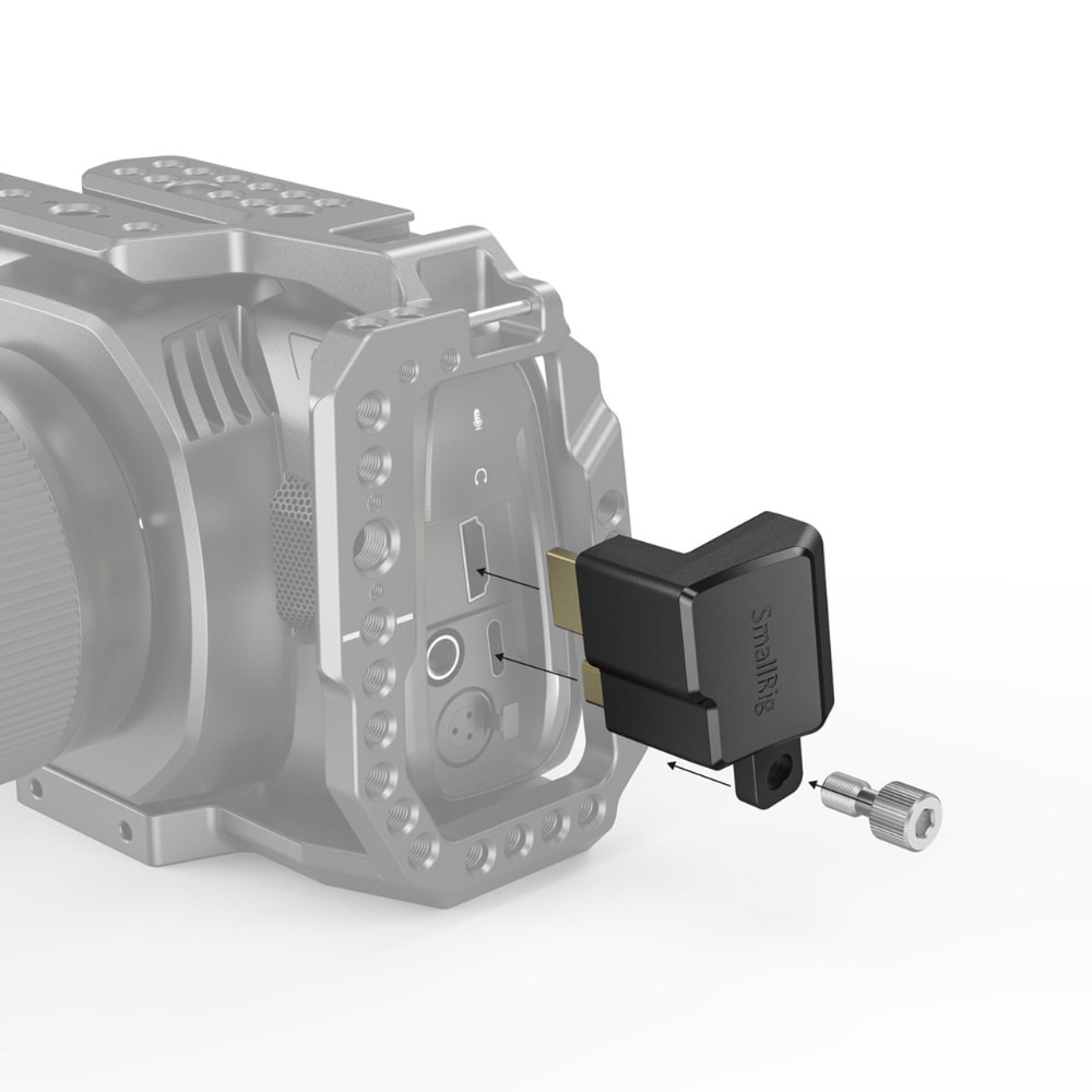 SmallRig BMPCC 4K用直角型HDMI&Type-C変換アダプター 2700は、弊社製ケージなどと合わせて、BMPCC 4Kのケーブル接続や肩載せ撮影をもっと簡単にする為に設計されています。ケージ2203/2203B(改良品)/2254/2254B(改良品)/2255/2255B(改良品)/2766などを装着したBMPCC 4Kに対応し、互換性が高い。1/4インチネジを使いアダプターをケージに固定し、安定性が高く撮影中に緩みにくくなります。