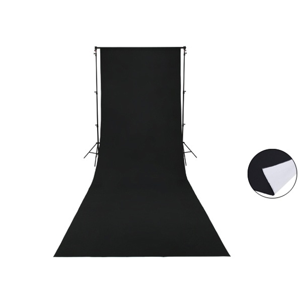 2枚の生地を合わせて1枚にした、リバーシブルで使える背景布です。 表がブラック、裏がホワイトのタイプです。