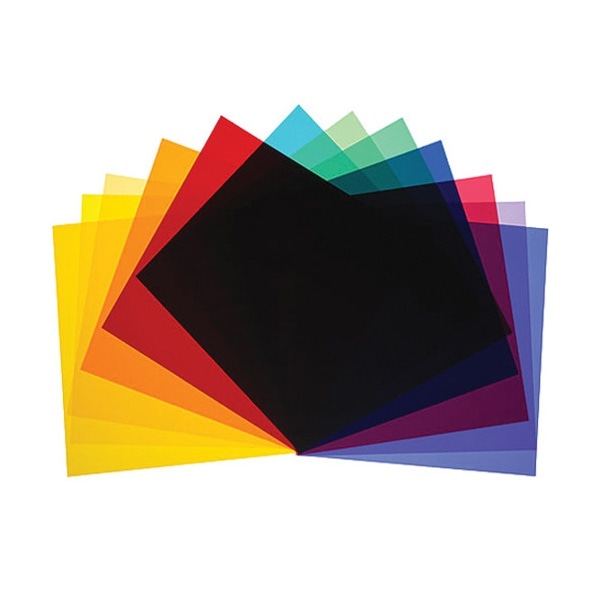 ブロンカラーP70または他の直径9インチのフィルターホルダーで使用するための12種類の9インチカラーゲルフィルターセットです。