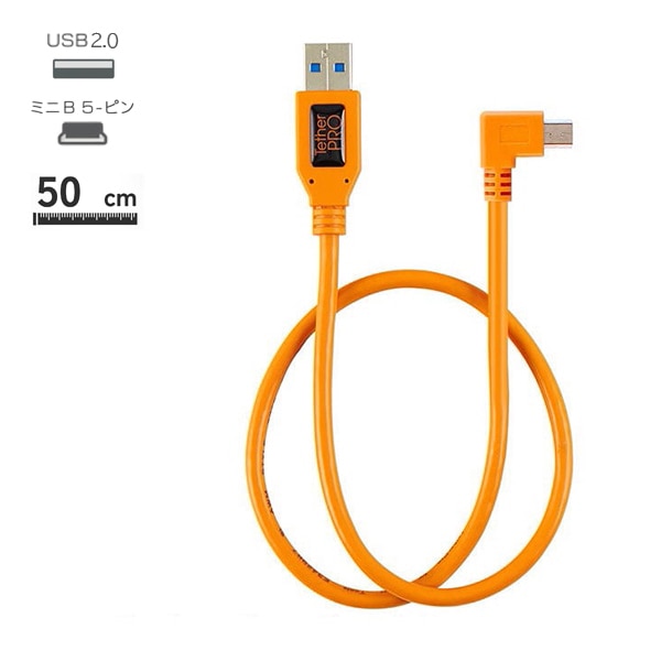 【会員価格/SALE】TETHER TOOLS(テザーツールズ) TetherPro Right Angle Adapter USB 2.0 to USB 2.0 mini-B 5-pin オレンジ(50cm) CU51RT02-ORG