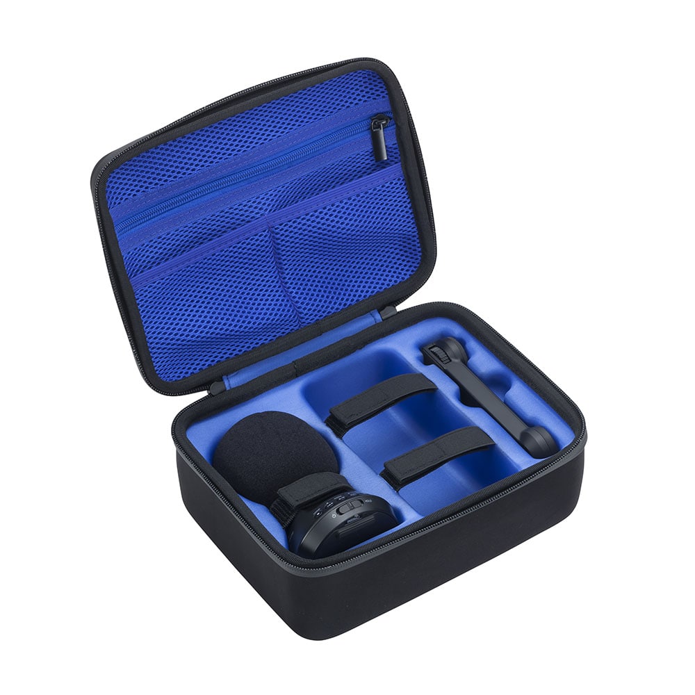 ハンディレコーダー『H3-VR』を傷や衝撃から保護する、軽量で丈夫なEVA素材を採用したセミハードタイプの専用キャリングバックです。『H3-VR』本体と一緒に、ウィンドスクリーン、デュアルマウントアダプタ、単3電池、microSDカードなどのアクセサリを入れて持ち運ぶことができます。