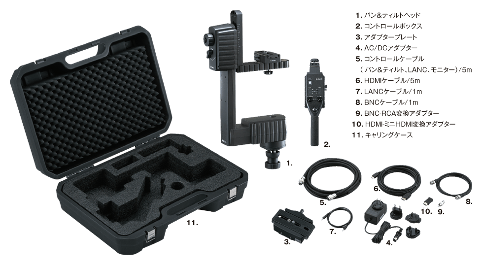あらゆる撮影条件や使用カメラを想定した各種ケーブル、アダプターを専用ケースに同梱。快適な撮影をサポートします。SWIFTJIB50KIT&REMO30 製品紹介ビデオ