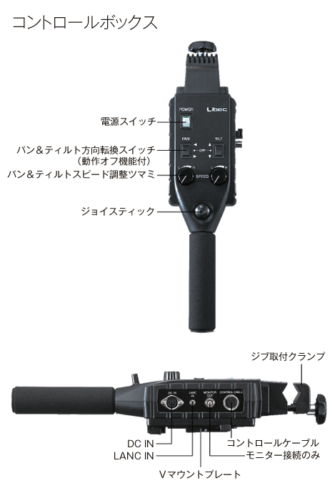 パンおよびティルトスピード調整ツマミとジョイスティック操作により、非常に広い範囲で、撮影状況に応じたスピード変更が可能です。縦だけ、横だけを動かせる動作OFF機能