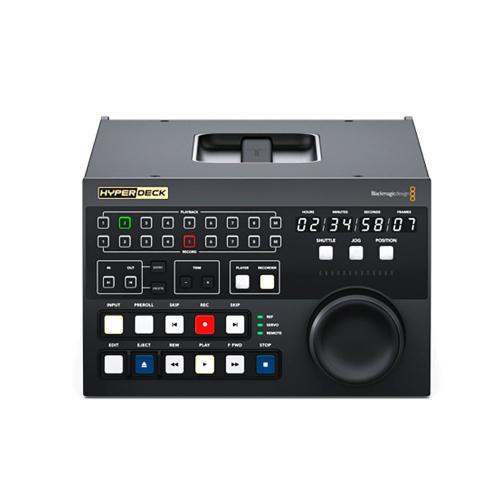 HyperDeck Extreme Controlは従来型のデッキコントロールを搭載し、編集機能を内蔵しているため、ビデオテープに収録された過去の番組を自動でインジェストできます。HyperDeck Extremeに追加することで、スピーディに使用できるプロ仕様のデッキソリューションになります。トランスポートコントロールボタン、タイムコード、デッキステータスに対応しており、電子クラッチを搭載した大きな検索ダイヤルでジョグ、シャトル、位置調整が可能。