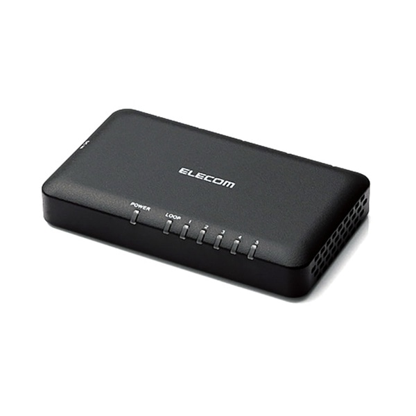 1000BASE-T対応のACアダプター電源の超小型プラスチック筐体5ポートハブです。省エネ法に準拠したエコ省電力タイプで、ループ検知機能も搭載しています。メイン基板に電解コンデンサを使用せず、長寿命設計を実現した高信頼性なスイッチングハブです。製品の特長