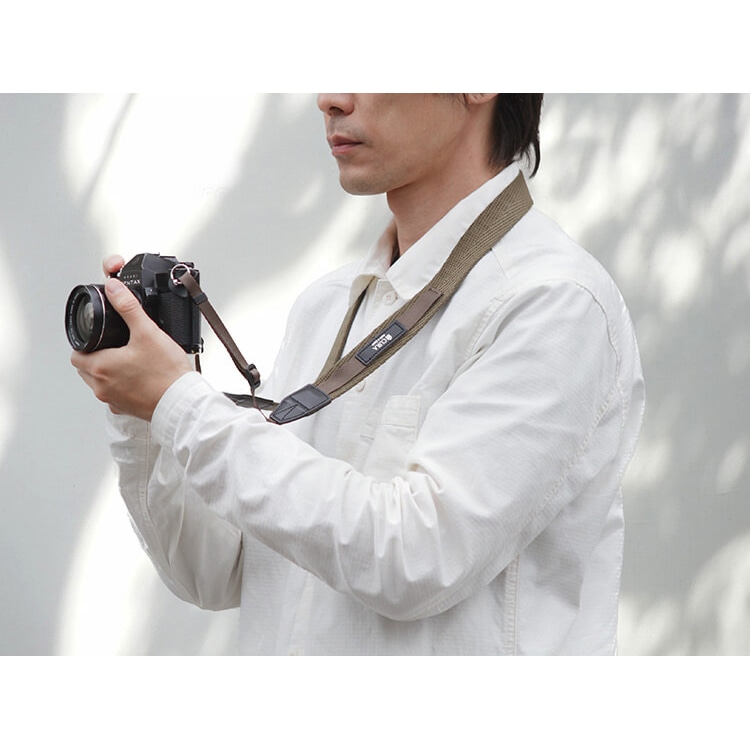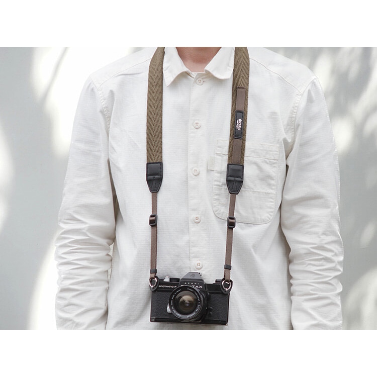 あえて左右非対称にしたデザインは蔵CURAからのカメラストラップの新しい提案です。2種のテープはスリット構造になっていて“何かに活用できる”ようになっています。