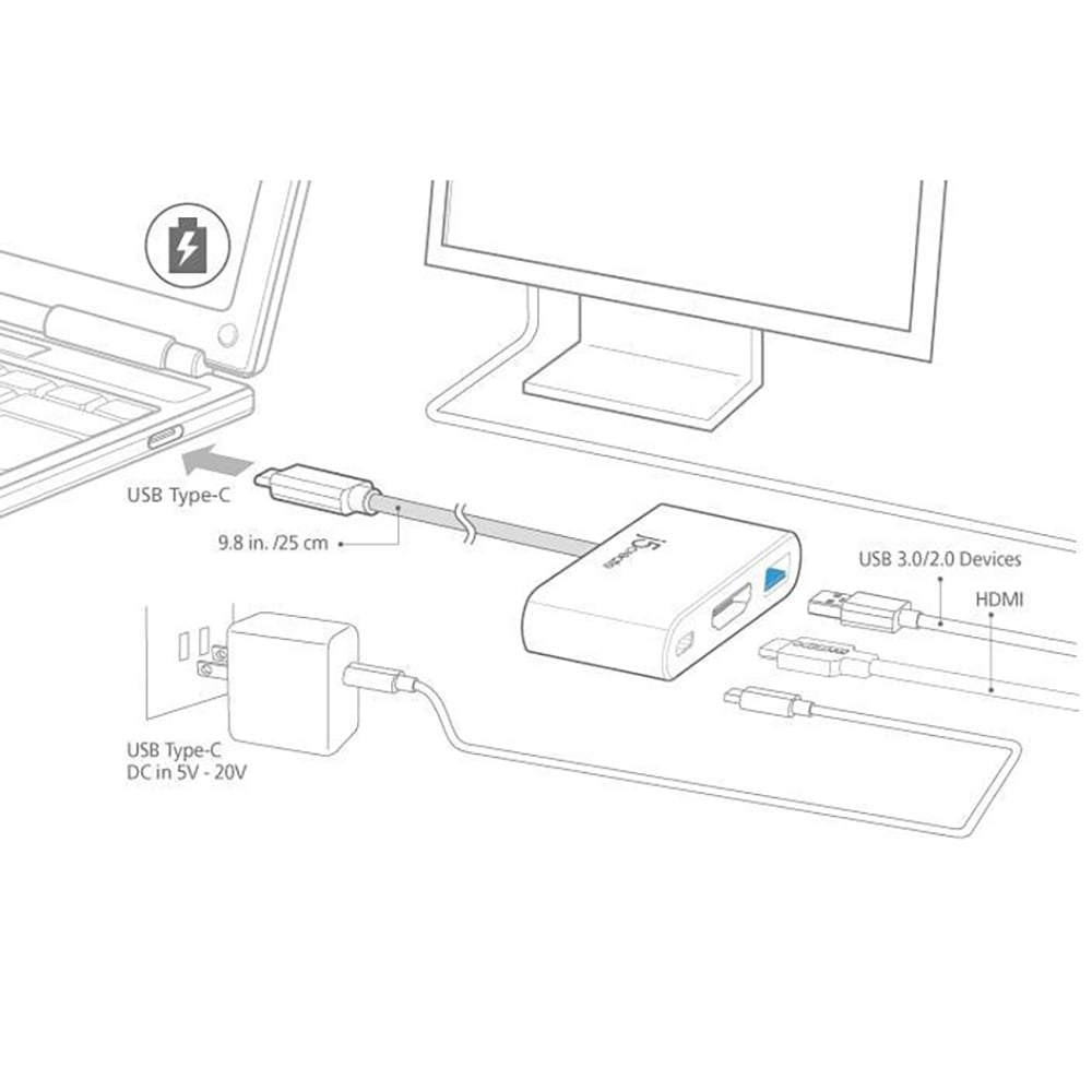 5create JCA379 パワーデリバリー対応でパソコンの充電をしながら増設した機器の使用が可能、USB Type-C 充 電用ポート×1、HDMI、USB3.0 ×1 ポートが増設でき、HDMI 最大解像度4K@30Hz。HDMI出力ポート