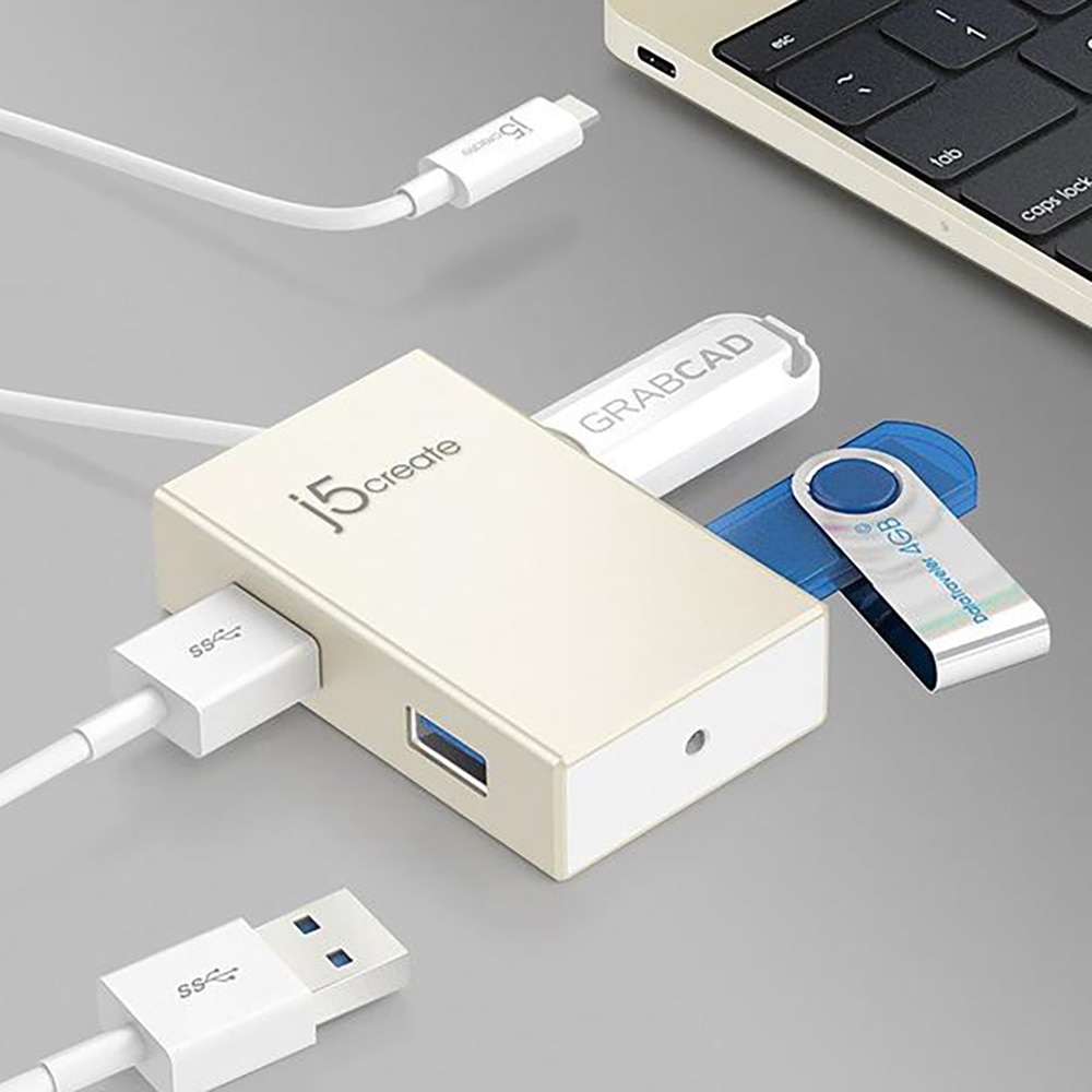 JCH343 USB Type-C 4ポートハブへは5 Gbpsの速度にて、USB 3.0デバイスを最大4台同時接続できます。USB 2.0 (480 Mbps)と1.1 (12 Mbps)デバイスへの接続性とサポートも確保します。JCH343は外付けUSB 3.0ディスクドライブ、高解像度ウェブカム、ビデオ監視カメラ、デジタルビデオカメラなど、広帯域のSuperSpeed USB 3.0デバイスに対応します。MacBook、Chromebook、およびその他のUSB Type-Cポートを搭載するノートパソコンやデスクトップコンピューターに最適です。