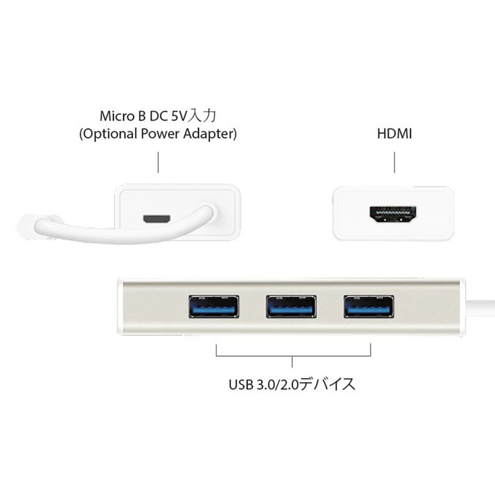 USB 3.1 Type-C 3ポートUSB 3.0ハブはお使いのコンピューターの接続機能を拡張します。ポケットサイズのマルチアダプターはコンピューターの周辺機器用にUSB 3.1/3.0/2.0ポートを3台追加し、USB Type-Cポートを通じてHDMIを接続できます。