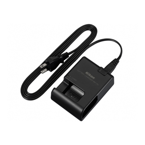 Li-ionリチャージャブルバッテリー EN-EL15用バッテリーチャージャー。バッテリーチャージャー本体には、電源コードと直付け型の電源プラグが付属します。また、EN-EL15が約155分で充電できます。