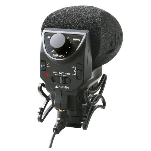 ステレオとモノラル、ふたつのマイクが一体型となったSMX-30Vは、さらにその2つの音の割合を可変式に調整できるマイクです。ボリュームツマミひとつでステレオからモノラルへ、モノラルからステレオへ、常に一定の音量で2つの音の比率を細かく調整することできるため、映像を見ながら音声をコントロールする視覚と聴覚を合わせていく音作りが可能になります。