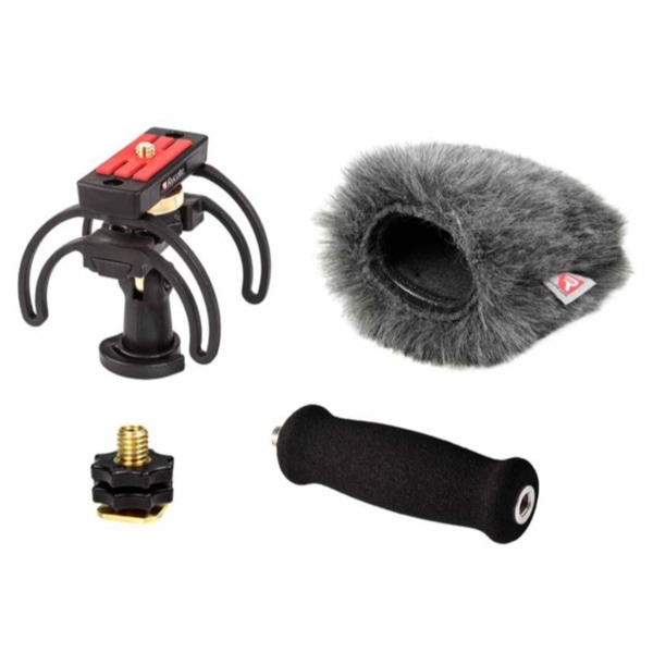 このキットには、ズームH5用のミニウィンドジャマー、フォームハンドグリップ付きの拡張ハンドル、ポータブルレコーダーサスペンション、1/4インチから3/8インチのスイベルアダプターが含まれています。