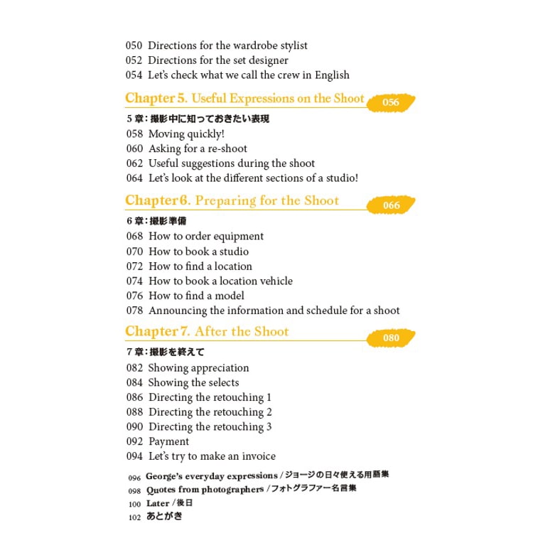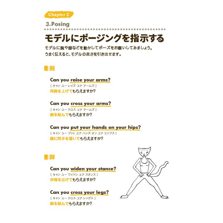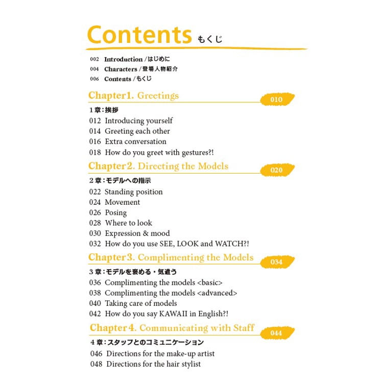 「コミュニケーション編」では撮影現場で必要になる会話に重点を置き、モデルやスタッフとのコミュニケーションを円滑に行うことを目標にした内容になっています。