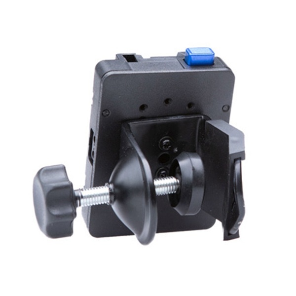 U クランプを装備した V マウントプレート。D タップ出力を装備、ポール等に固定して使用できます。