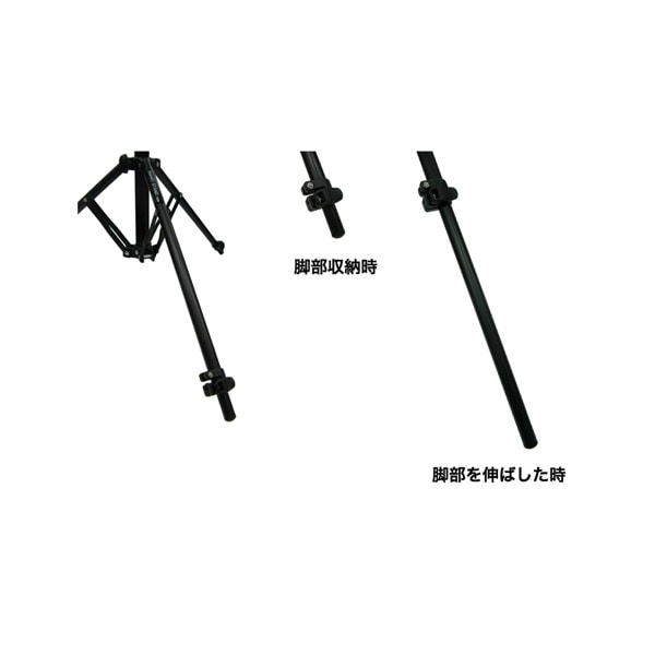 【小さくたためて持ち運びにも便利】脚部を反対に折りたたむことで、収納時に49cmまで小さくすることができるスタンドです。また、脚部それぞれが個別に伸縮可能で、段差のある場所でも活躍します。