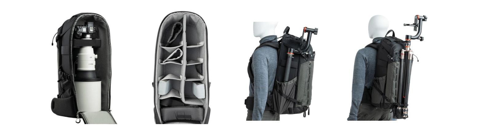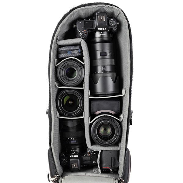 革新的なバックパネルの開口部により、バッグを垂直に立てた状態でも寝かせた状態でも機材にスムーズにアクセスできます。野生動物や自然環境の撮影を行うフォトグラファーはもちろん、フォトワークショップへの参加や僻地での撮影、旅行など、さまざまなシーンで活躍します。