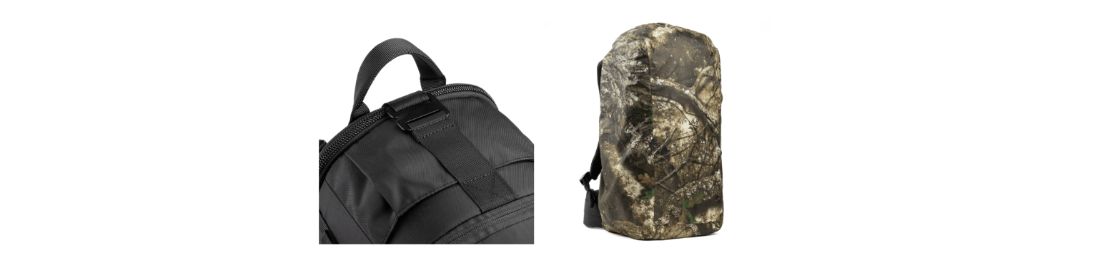 また、リアルツリー® ATXカモフラージュ柄のレインカバーが付属し、悪天候下でもバッグをしっかりと守り、野外での撮影時などに役立ちます。