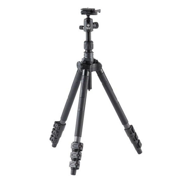 脚を180度反転して折りたたみ、専用の自由雲台を脚の間に収納することで、従来の三脚ではありえなかった小型高性能を実現。