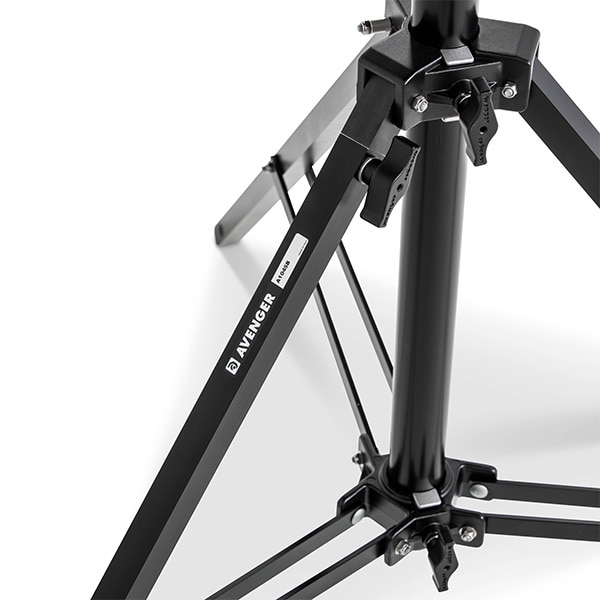 アベンジャーコンボスタンド45は、4段3ライザー構成の黒アルミニウム製スタンドです。