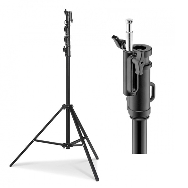 最大30kgの機材を保持することができ、4.50mの高さまで伸ばすことが可能なヘビーデューティースタンドです。別売りのブレーキ付きホイールA900NBが取り付け可能です。