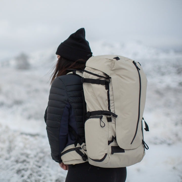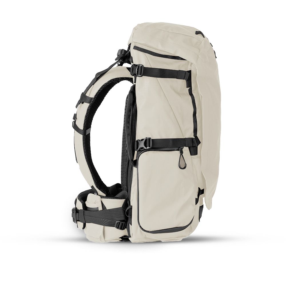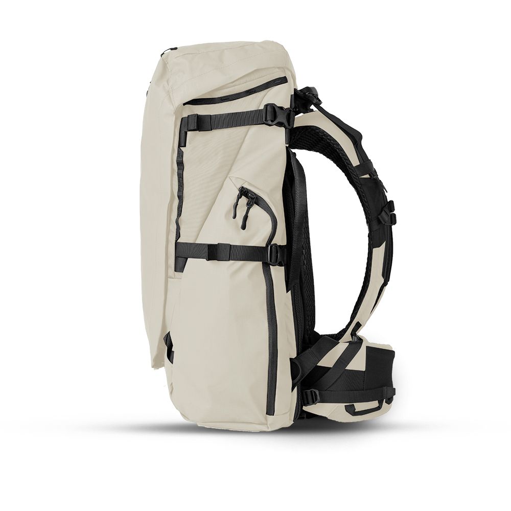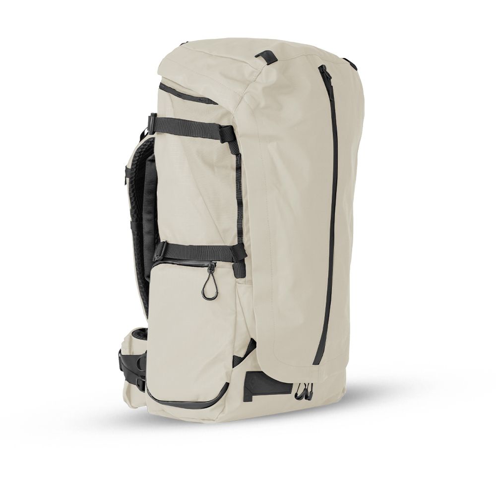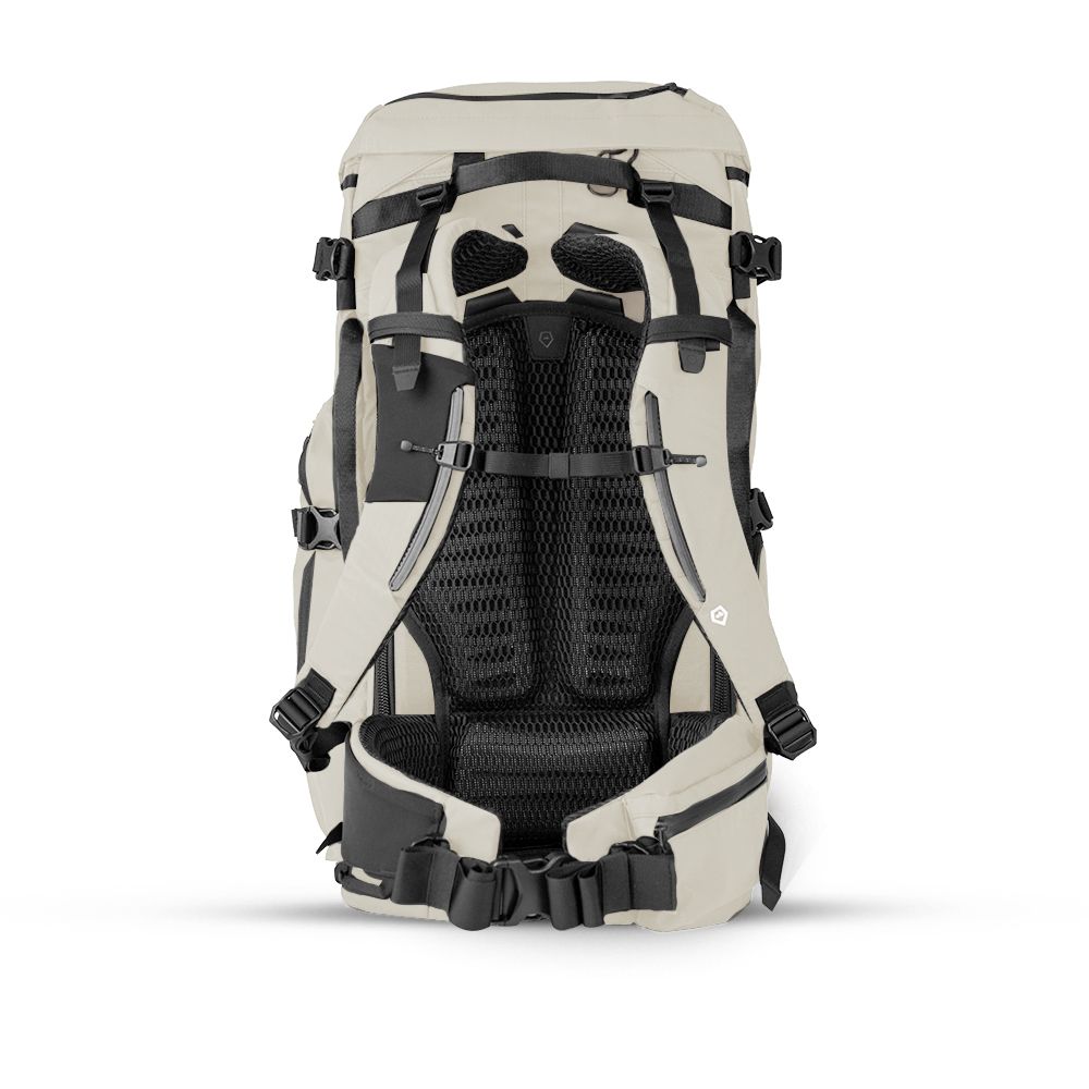 S/Mの2サイズより、腰骨から頚椎までの長さ、胸囲、腰回りに合わせたサイズをお選びいただけます。両サイズの違いは外寸だけで、どちらもたくさんの荷物に加え、カメラキューブ(別売)をセッティングすることで機材も収納できる、大容量の50L です。