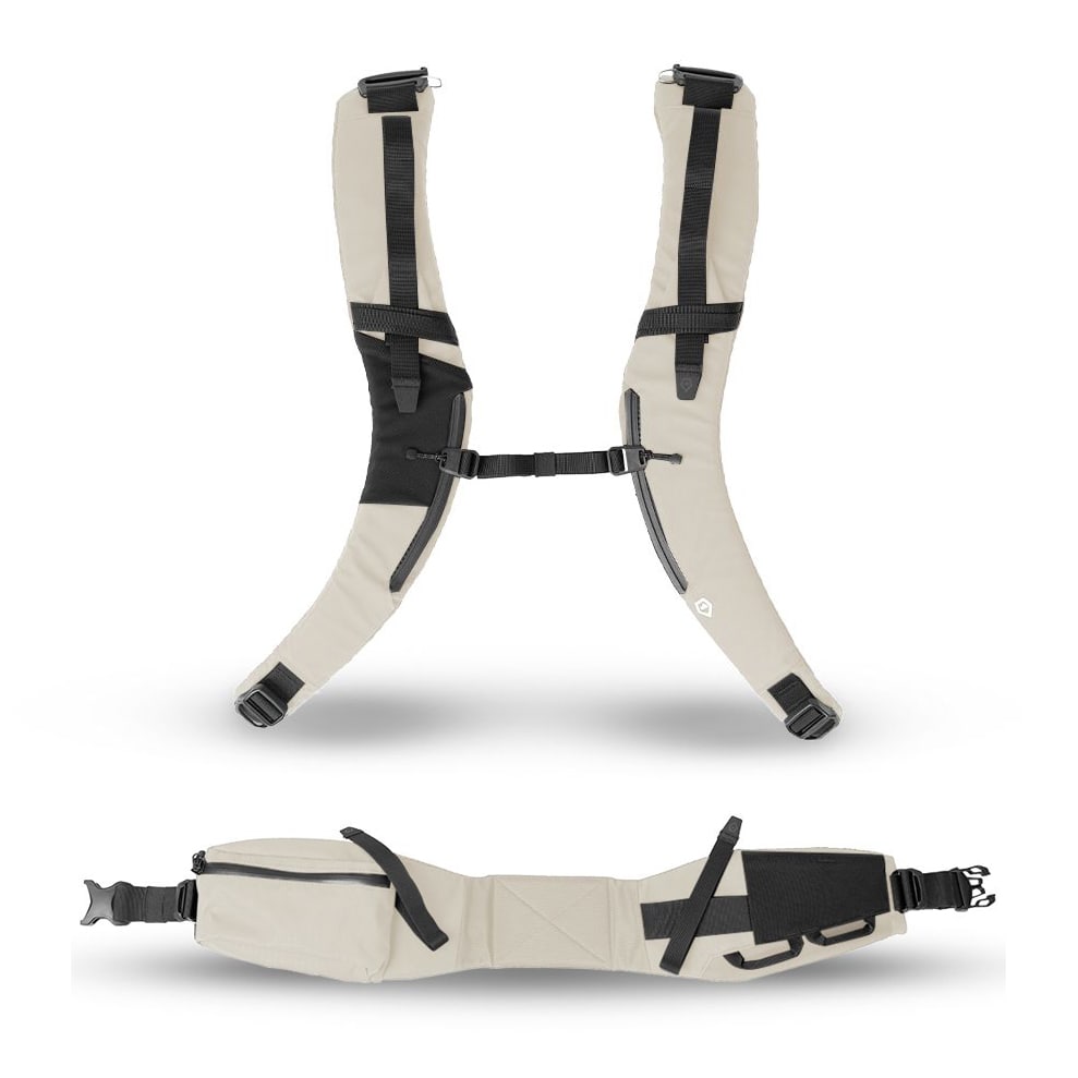 バックパックに備わったストラップやベルトを調節し、胴体(ショルダーストラップ取り付け部、バッグ上部ストラップ)、胸部(チェストストラップ)、肩(ショルダーストラップ)、腰(バッグ底部のストラップ、ウエストストラップ)の各ポイントをフィットさせられます。4つのアクセスポイント