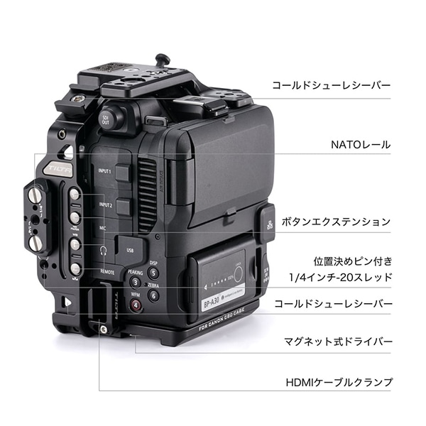 ・キヤノン EOS C80専用設計・多彩なマウントオプション: NATOレール、コールドシュー、1/4"-20 & 3/8"-16ネジ穴(位置決めポイント付き)