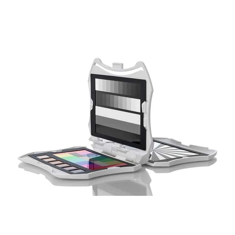 ・ワークフロー用のカラー カード Spyder Checkr Video には、5 つの高光沢ターゲット カードが含まれています。異なるワークフロー用の 2 種類のカラー カード (従来のカラー パッチ カード + 特許出願中のカラー パターン カード)、22 段階のグラデーション グレー スケール カード、ホワイト バランス用の単色ニュートラル グレー カードとフォーカス スター カード。