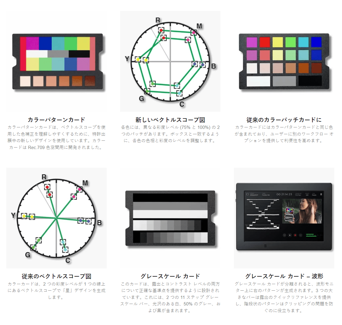 ・特許出願中のカラー パターン カード Rec.709 に準拠したターゲットとパターンの位置合わせ