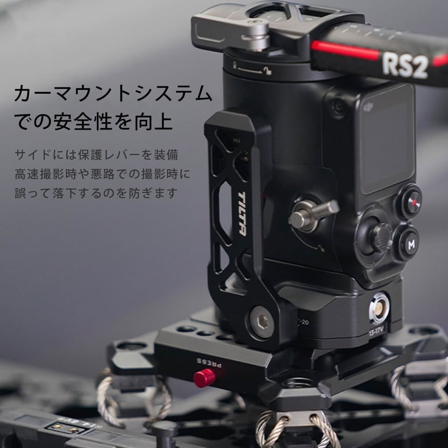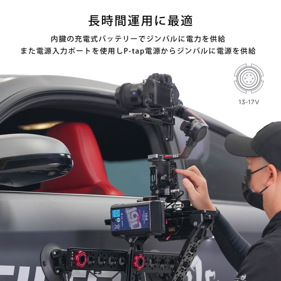※RS3(Proではないモデル)には、別売りのRS3用セキュリティーブラケットが必要です。RS2の電源ベースプレートはRS2のベースに直接取り付けられ、付属のPタップから2ピンケーブルを介してゴールドまたはVマウントバッテリーを介してジンバルに電力を供給することができます。