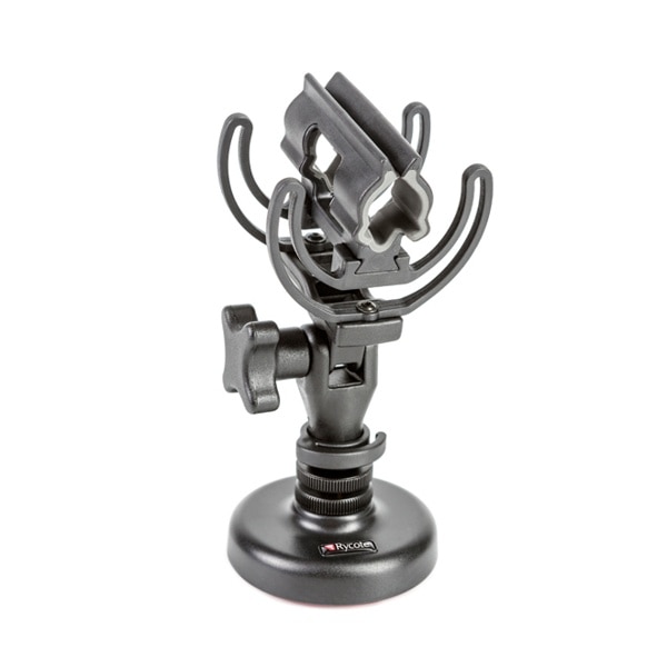 Rycoteテーブルスタンドは70mmの円形で、滑り止めのベースがあり、3/8インチのネジ山が特徴で、Rycoteマイクサスペンション、オーディオレコーダーサスペンション、または長さ250mmまでの小さなダイヤフラムまたはショットガンマイクが取り付けられたクリップを挿入できます。