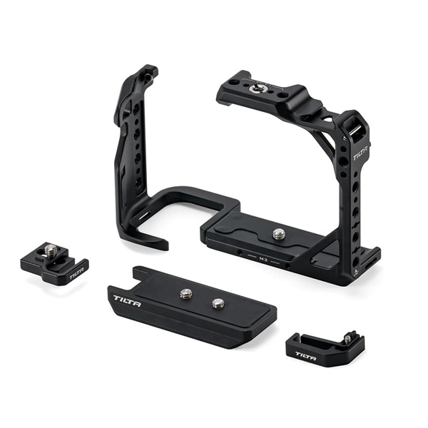 Sony a1 II / a9 III 用フルカメラケージ は、カメラ本体を保護しながら、さまざまなアクセサリーを装着できる拡張性を備えたケージです。コールドシュー、M3ネジ、1/4″-20ネジ(位置決めポイント付き)、3/8″-16 - 1/4″-20ネジアダプター を搭載し、マイクやモニター、ハンドルなどのアクセサリーを柔軟に取り付け可能。モジュラーデザインにより、フルケージからハーフケージへと簡単に移行でき、撮影スタイルに合わせたカスタマイズが可能です。