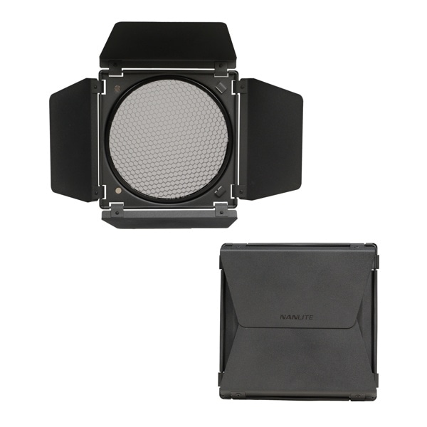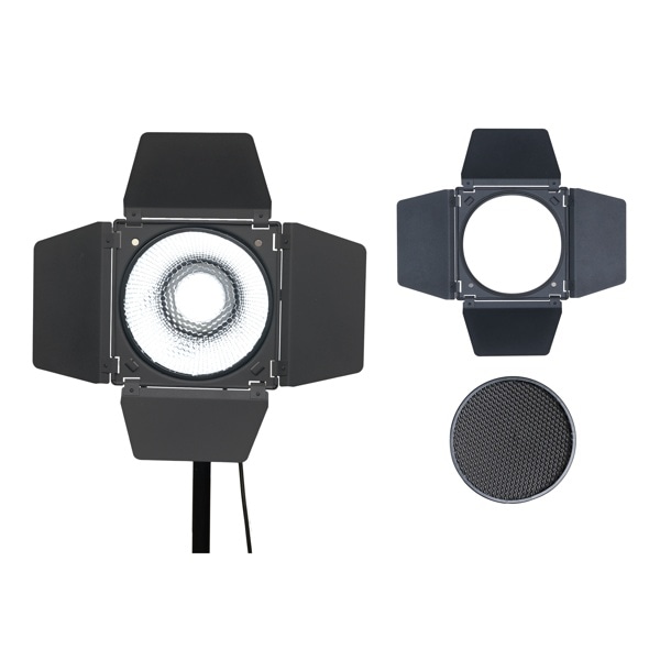 このバンドアにはマット仕上げが施されており、撮影時の反射を最小限に抑える設計です。4枚のリーフはそれぞれ独立して調整可能で、中程度のヒンジを使用して光の拡散を正確にコントロールできます。