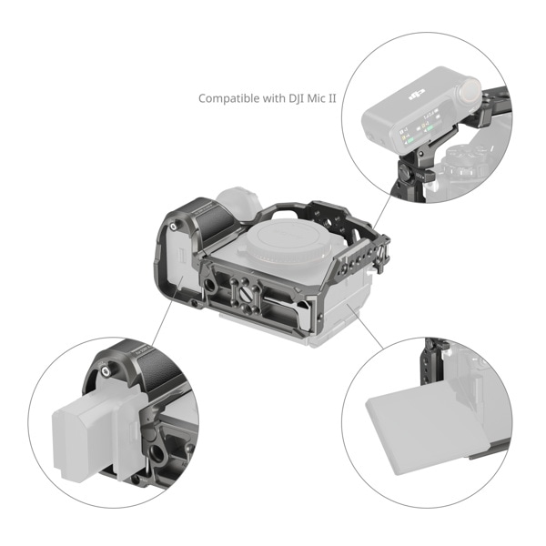 ・堅牢な保護と安定性: 3 点のたわみ防止ロック システムを備えた設計のケージは、2 つの 1/4 インチ - 20 ネジと M4 位置決めピンを使用してカメラをしっかりと保持し、D リングを取り外すことなく安定性を確保します。内蔵パッドが傷から保護します。