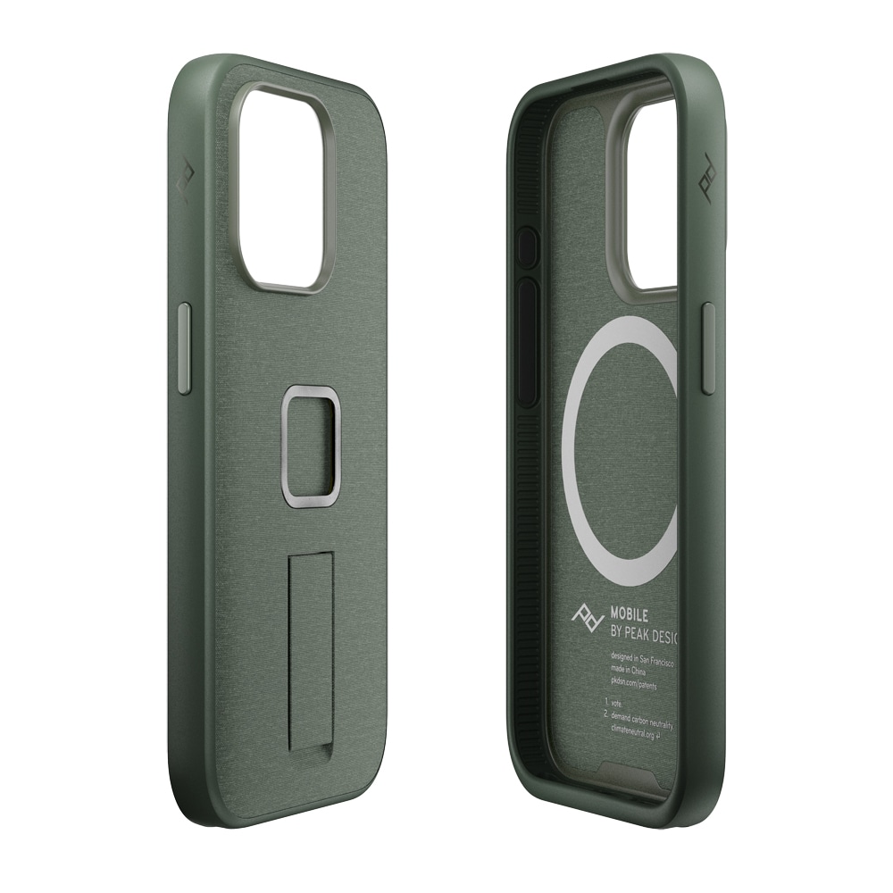 ケース背面にピークデザイン独自の SlimLink™を備え、スマートフォンをさらに便利に活用できるアクセサリー類を取り付けられます。ケース本体は丈夫なポリカーボネート素材で、表面にはシックなナイロンキャンバス生地を採用しています。フレームには TPU 素材を使用し、衝撃吸収にも優れています。