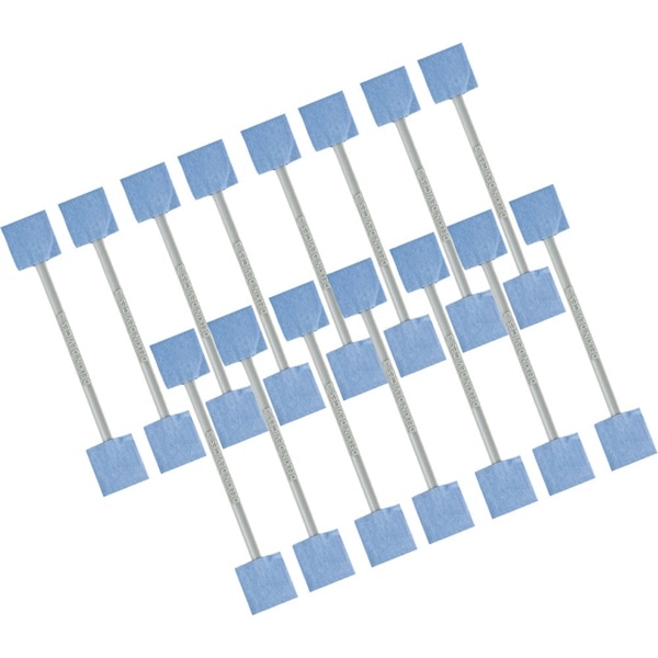 センサーに付いたゴミがブロアーでも除去できずに残留しているならば、スワブと洗浄液で取り除きます。スワブの片側に洗浄液を2滴垂らして撮像素子面を一往復させます。 更に乾いた側でからぶきして終了です。 使用したスワブは再利用できませんので捨ててください。 スワブは1本1本包装されていますので、携行に便利です。スモールサイズ(幅 24mm): 15本入り。スペック
