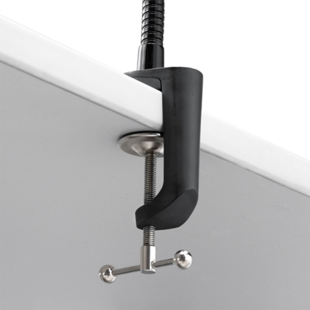 ・デスクへの取り付けはクランプ式で、天板厚15~60mmのデスクに対応しています。
