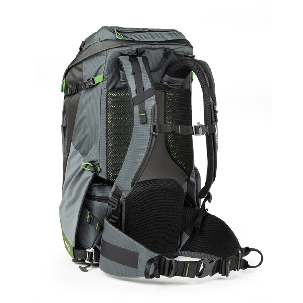 バックパック本体はショルダーストラップやウエストベルト、背面長など計 10 箇所を調節することで、体にしっかりフィットさせられます。また、バッグ背面のバックパネルは通気性が高く、快適に持ち運びできます。