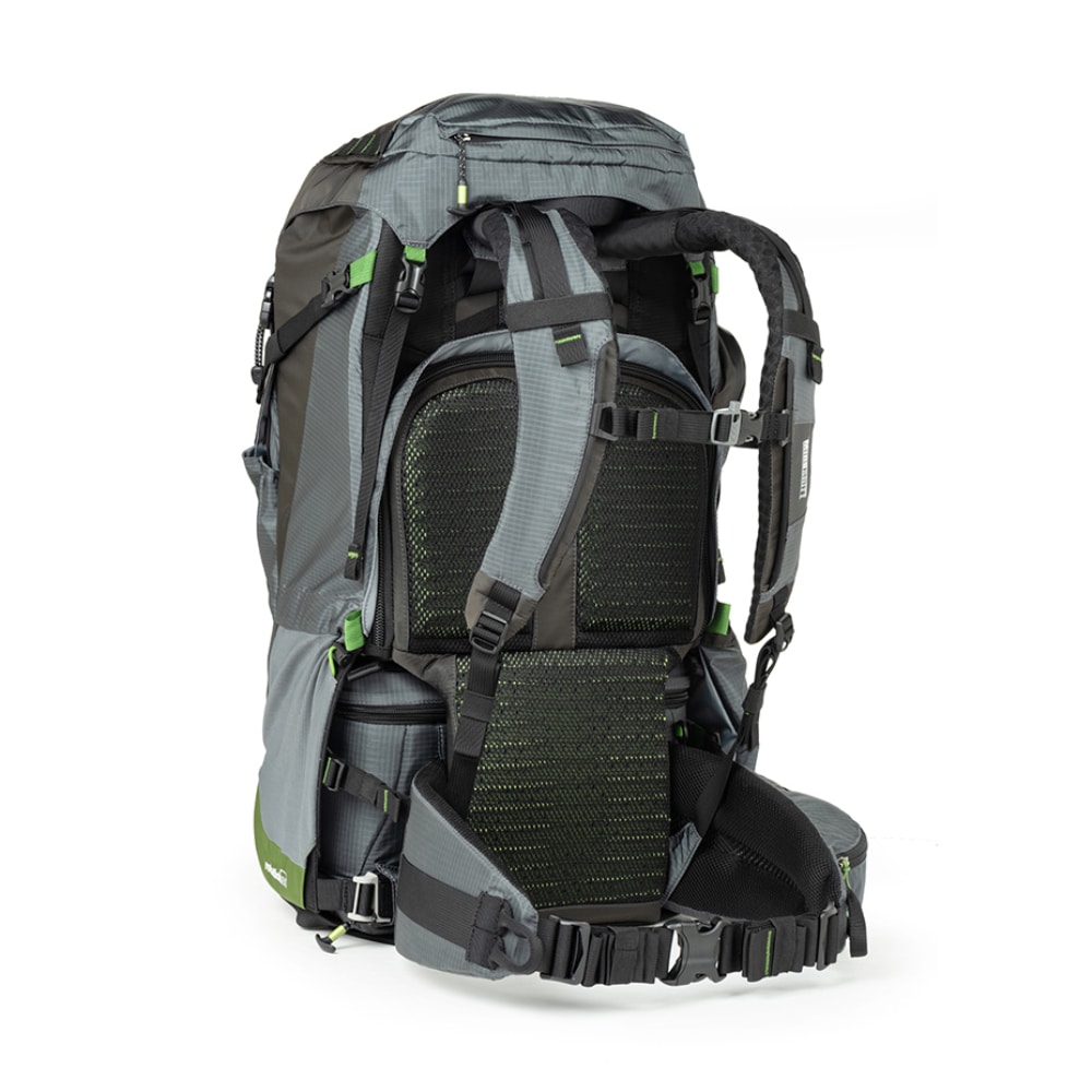 バックパック本体はショルダーストラップやウエストベルト、背面長など計 10 箇所を調節することで、体にしっかりフィットさせられます。また、バッグ背面のバックパネルは通気性が高く、快適に持ち運びできます。