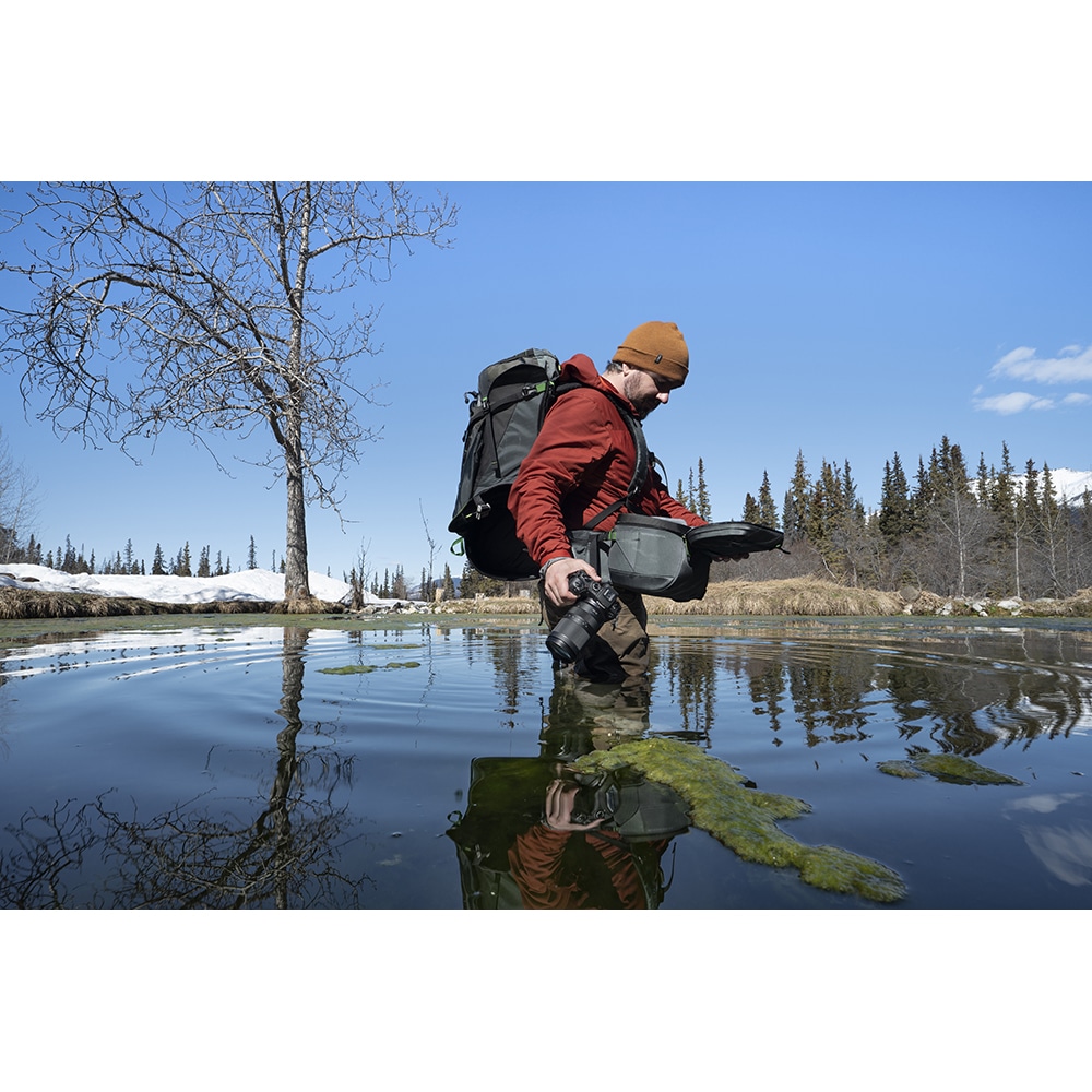 「カメラバッグからカメラを取り出す間にシャッターチャンスを逃した」「バックパックにしまった機材を取り出しづらい」...そんな悩みを解消し、動物や風景などのベストショットを逃すことなく機材にアクセスできるバックパックが、マインドシフトギアのローテーション 180°シリーズです。バックパック本体を肩からおろす必要がなく、バッグ下部のベルトパックを身体の前に移動するだけで、カメラやレンズに素早くアクセスできます。ベルトパックは開口部にマグネットが採用されているため、片手でスムーズに開閉できます。