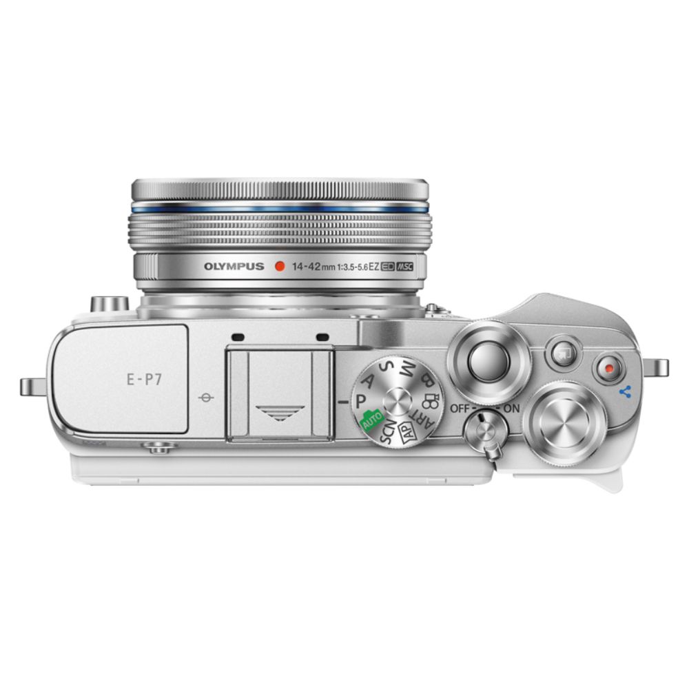 「OLYMPUS PEN E-P7」は、「OLYMPUS PEN」シリーズの特長であるシンプルかつ上質さを徹底的に追求し、フロントとリアの各ダイヤルにはアルミ削り出しのパーツを採用するなど、細部のディテールまで作り込まれた端正で洗練されたデザインとなっています。ボディー単体で約337g※1、標準ズームレンズ「M.ZUIKO DIGITAL ED 14-42mm F3.5-5.6 EZ」と組み合わせてもわずか約430g、500mlのペットボトル1本より軽く、気軽に持ち歩いて軽快に撮影が楽しめるカメラです。