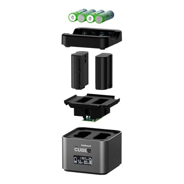 2つのバッテリーの充電状況をそれぞれ別々に、%で表示し進行状況が一目で確認できます。もちろん電池のカメラ上での残量表示にも連動します。