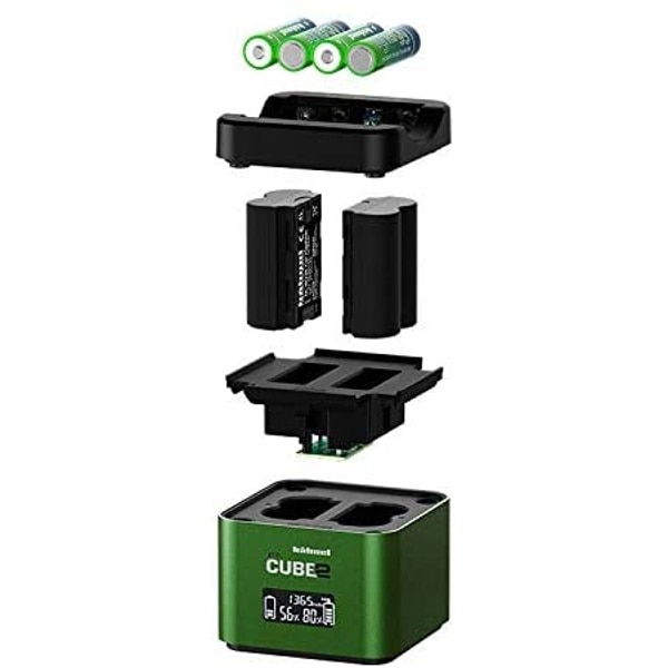 2つのバッテリーの充電状況をそれぞれ別々に、%で表示し進行状況が一目で確認できます。もちろん電池のカメラ上での残量表示にも連動します。