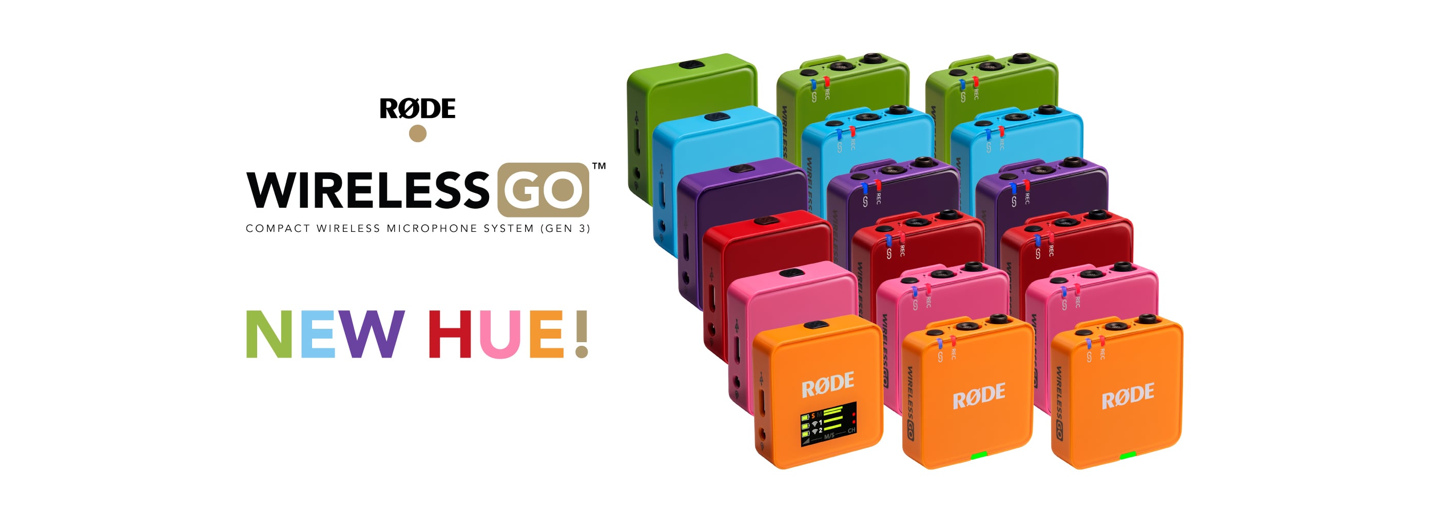 RØDEの第3世代ワイヤレスマイクシステム「ワイヤレスゴー(第3世代)」に、新たなカラーバリエーションが登場。「グリーン」「ブルー」「パープル」「レッド」「ピンク」「オレンジ」の6色がラインアップに加わります。