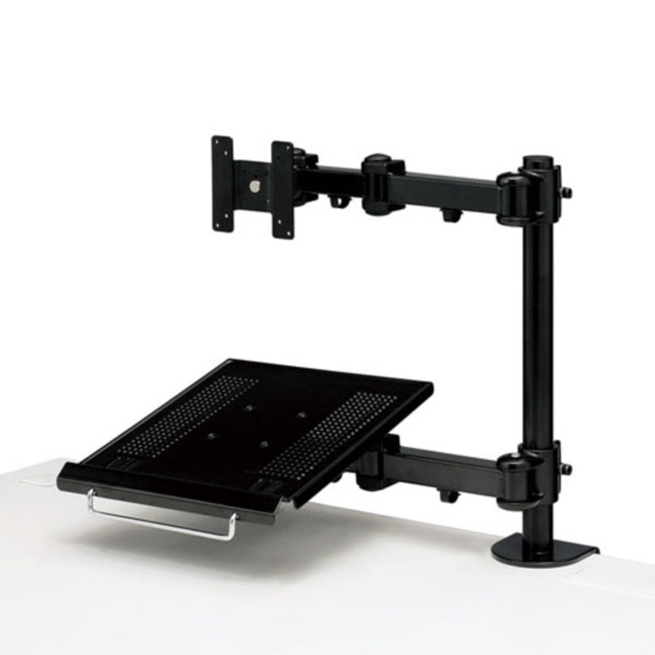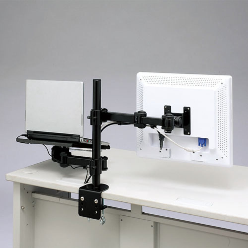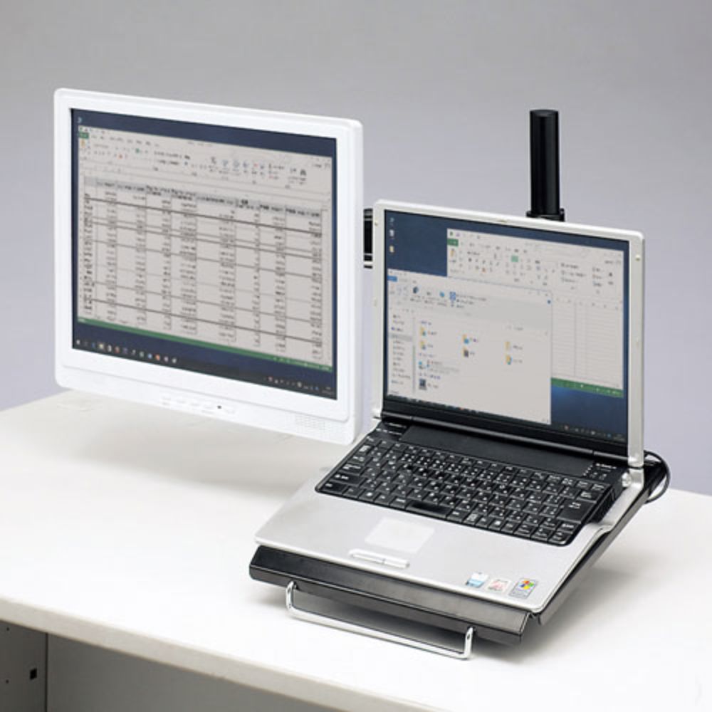 ・サブマシンのノートパソコンを設置するのに最適です。・液晶ディスプレイとノートパソコンを1本のポールで設置することができます。