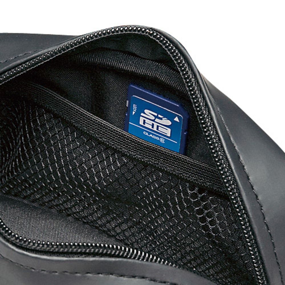 ・SDメモリーカード・内蔵メモリータイプの小型ビデオカメラに最適なサイズです。・メイン収納部にはメディアなどを収納できるメッシュポケットが付いています。