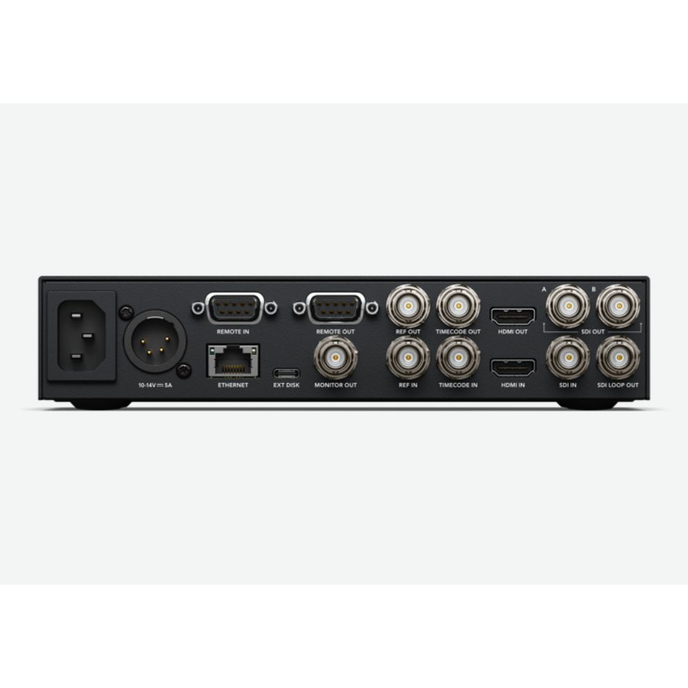HyperDeck Studio HD clusはMiniモデルの全機能に加え、サイズが大きいため、より多くのコントロールと接続を搭載。このモデルは6G-SDIに対応しているため、30fpsのUltra HDまでのproRes収録・再生が可能で、SDIループ出力とHDRもサポートしています。2つの6G-SDI出力では、1080p60までのフィル&キーの再生にも対応。HDMI入力とオーバーレイに対応した専用の3G-SDIモニタリング出力も搭載しています。