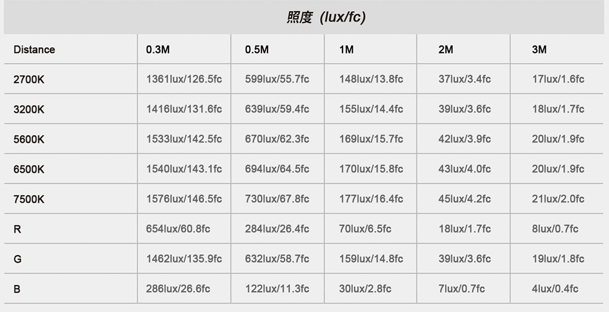 PavoTube II 6C 照度